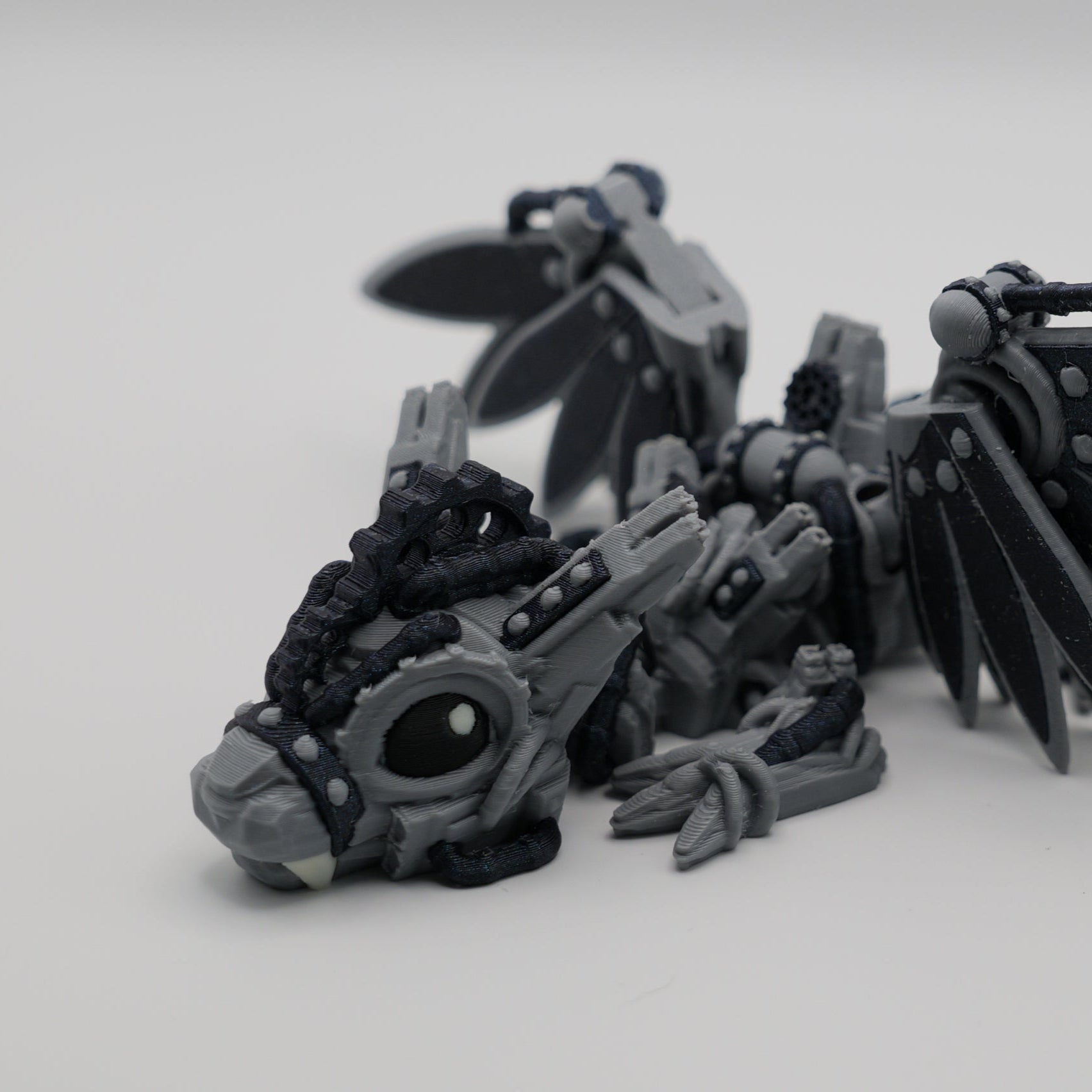 Each dragon is fully articulated, allowing for fun posing and endless fidget potential. The layered metallic tones give it a sleek, mechanical aesthetic — perfect for fans of steampunk, dragons, or unique 3D-printed art.