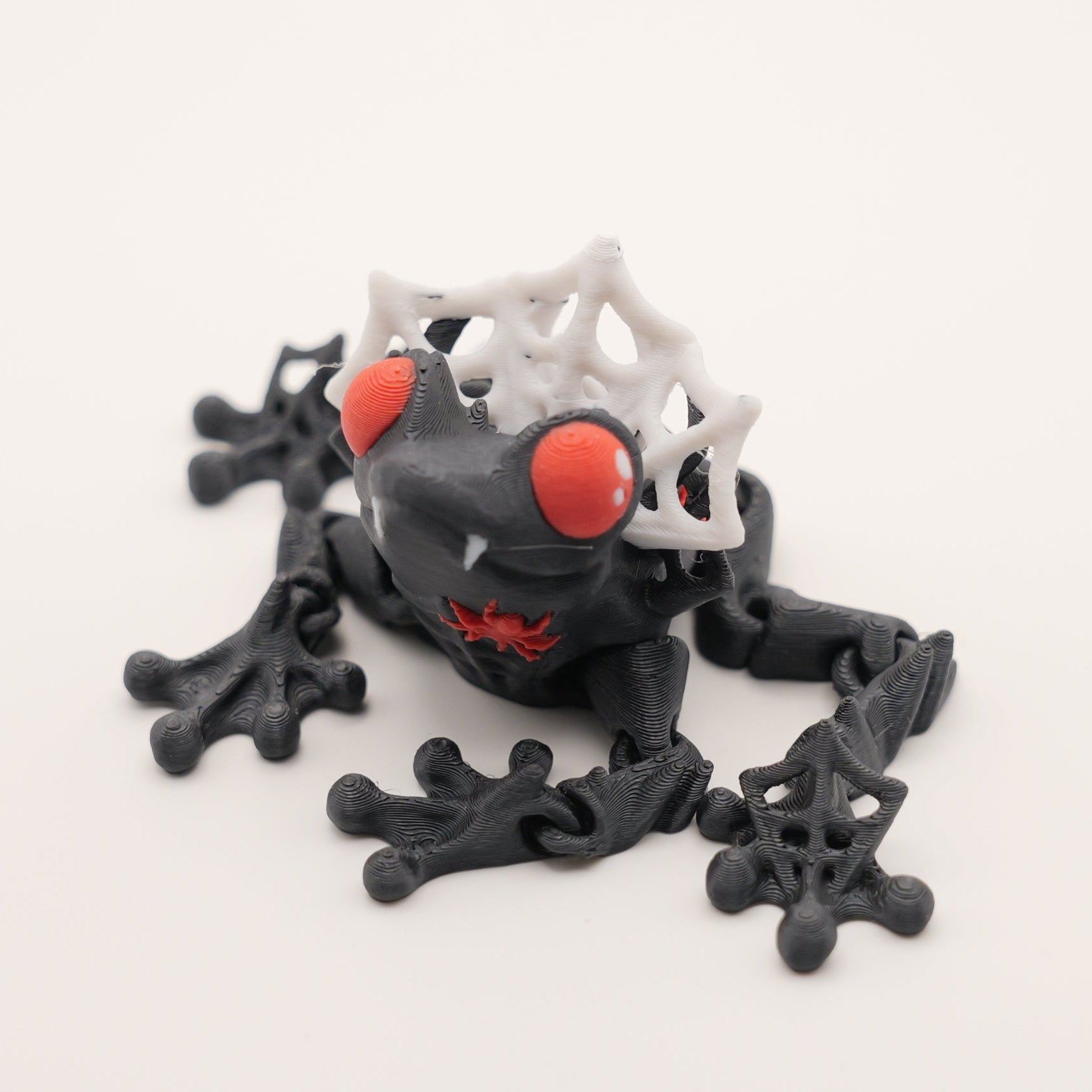Hop into the Halloween spirit with Count Frogula, the creepy-cute vampire frog with a flair for the dramatic! With his bold red eyes, spooky webbed accents, and eerie spider details, this little amphibian is ready to bring a chilling charm to your collection.