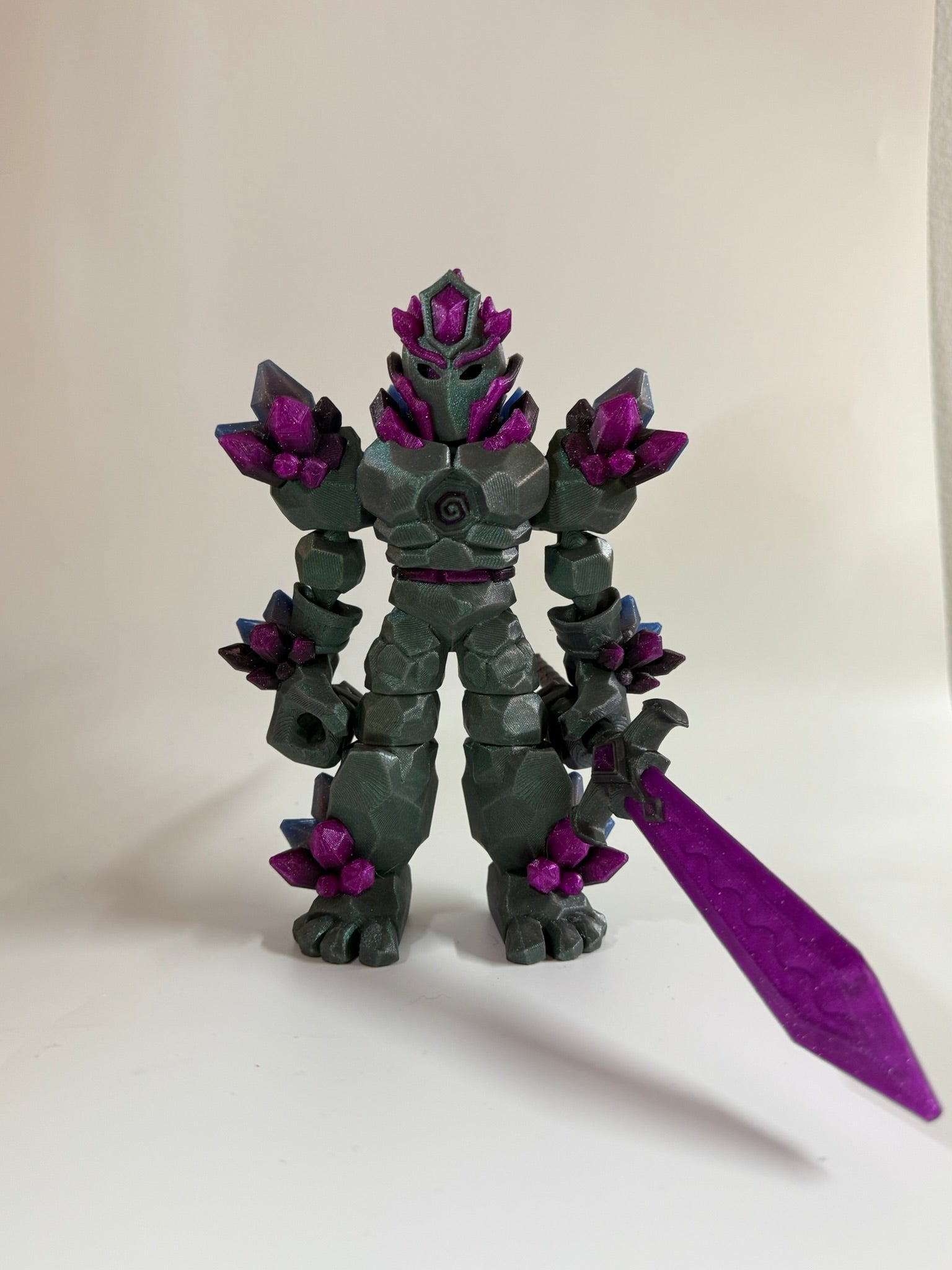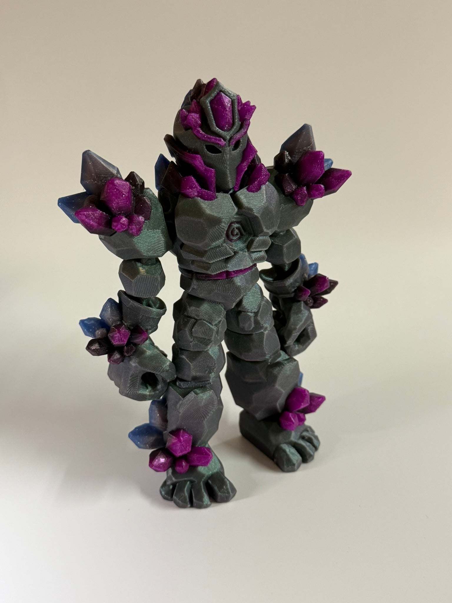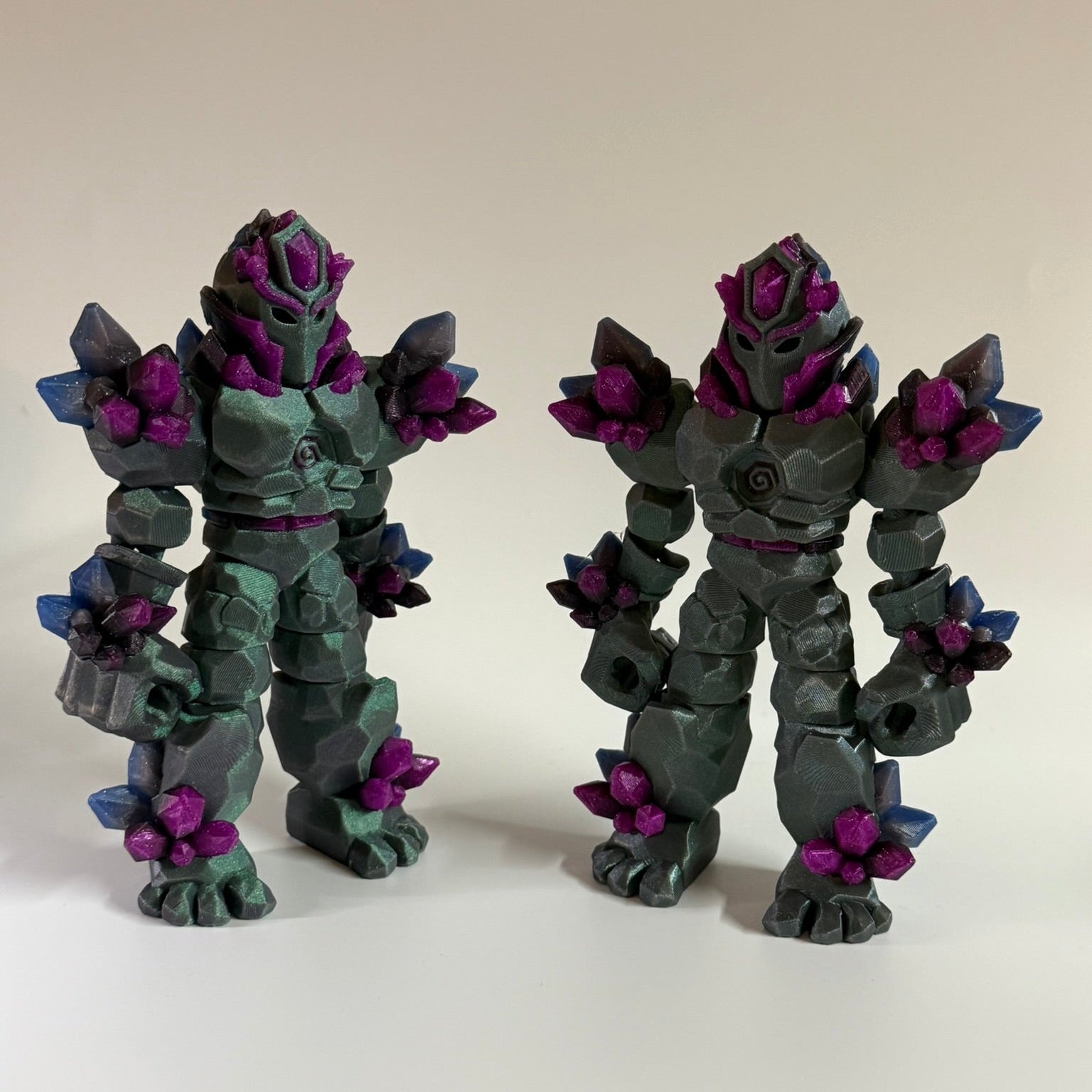 Forged from stone and infused with crystal energy, each warrior embodies the balance of strength and imagination. From the radiant Solarite to the molten Fire, the mystical Shadowlight, and the new Dark Bloom Warrior β vibrant crystals meet ancient armor in every 3D-printed design. Fully articulated and finished in shimmering multi-color filaments, these guardians are crafted to stand strong in any collection.