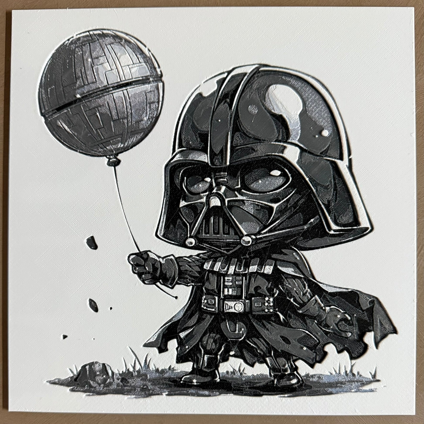 Mysterious, bold, and a little playful — the Dark Space Warrior 3D Printed Art blends sci-fi vibes with chibi-style cuteness. This 3D printed piece features a tiny armored figure holding a balloon shaped like a moon or battle station, creating a fun balance between lighthearted and powerful.