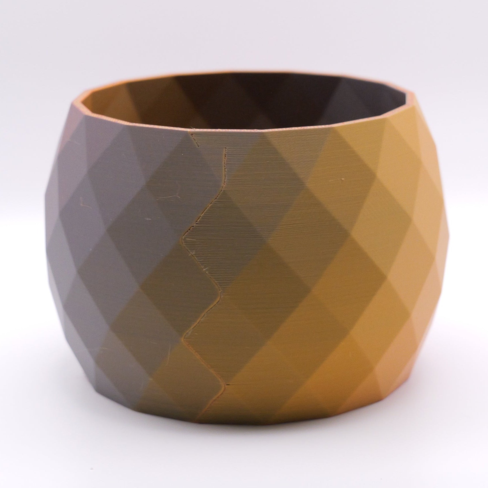 This stunning 3D printed planter/vase features a diamond-faceted design that gives it a bold, modern texture. The geometric surface catches light beautifully, creating subtle highlights and shadows across its surface.