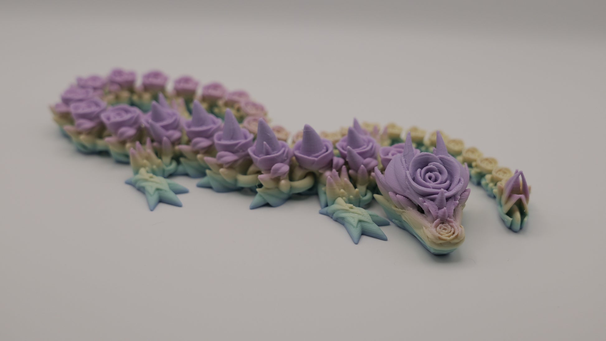 Elegant and enchanting, the Rosewing Dragon is a one-of-a-kind articulated collectible that combines the beauty of roses with the majesty of dragons. Each scale is crafted as a blooming rose, giving this 3D printed dragon a soft yet powerful presence.