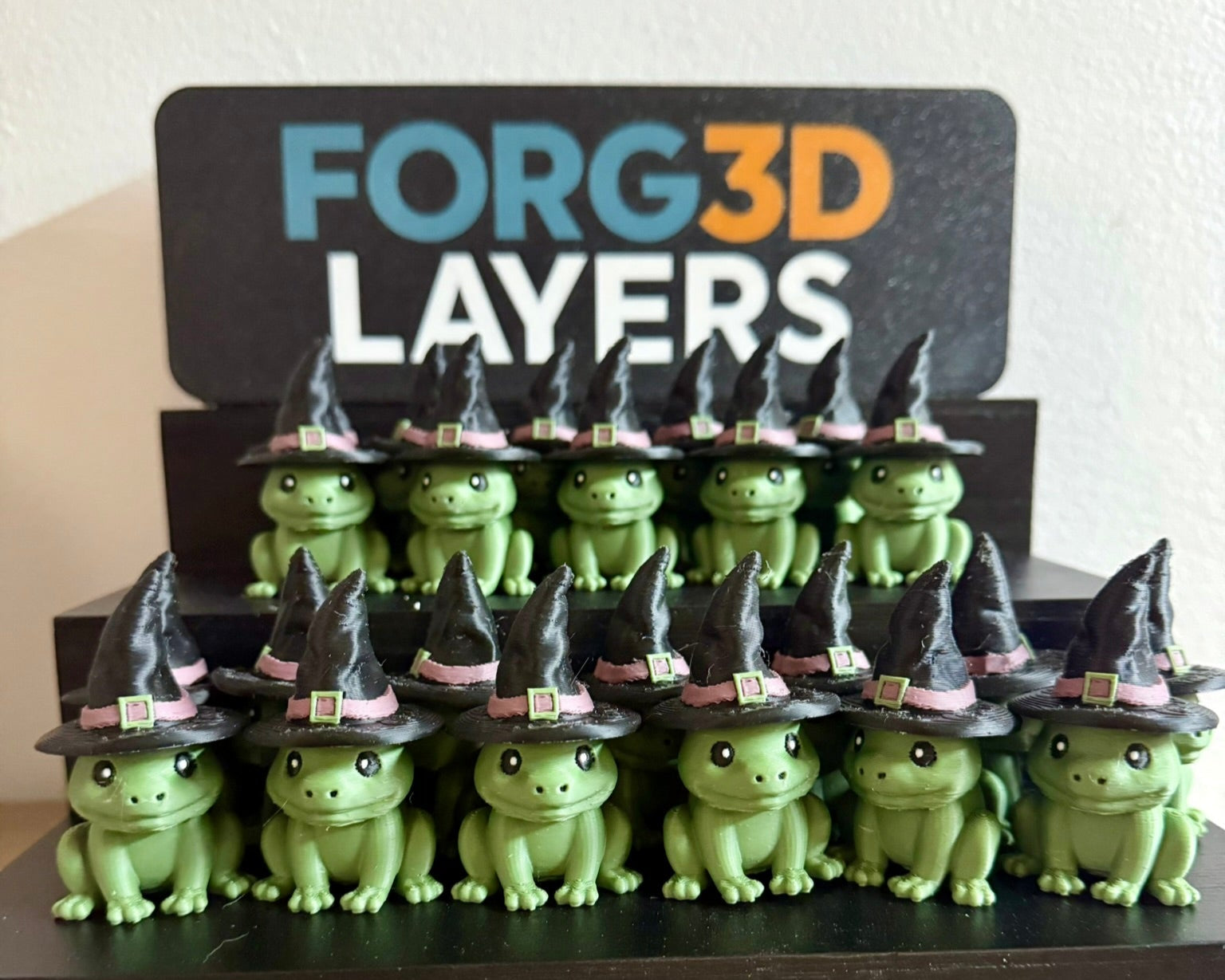 Straight from the cauldron of creativity comes the Witch Frog, a Forg3D Layers exclusive original design! This magical little amphibian sits proudly in its oversized witch hat, complete with a crooked brim and buckle detail. Equal parts spooky and adorable, the Witch Frog is a perfect companion for Halloween displays, fantasy collections, or anyone who loves a touch of whimsy.